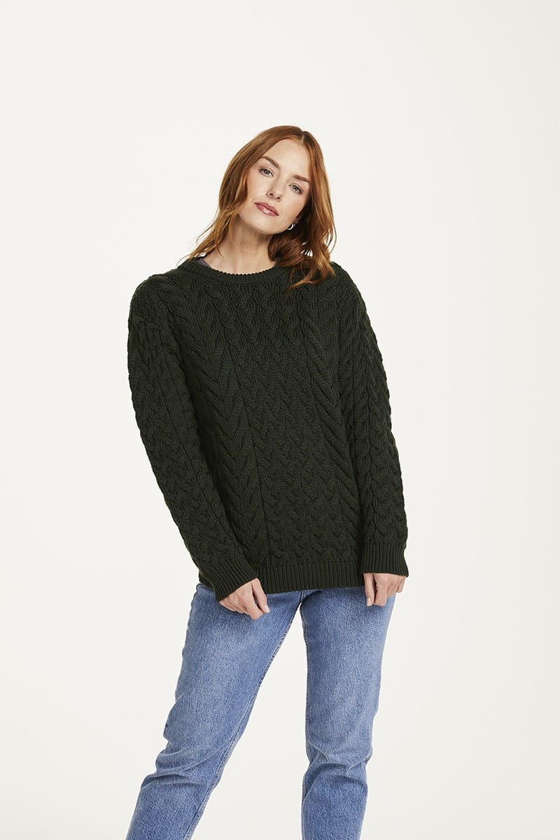 Knit using super soft merino wool, this unisex sweater has an extremely soft and luxurious feel to it. Featuring traditional Aran moss and cable stitching, this is a unique Irish sweater. A stylish addition to your knitwear collection and a fantastic gift from Ireland.